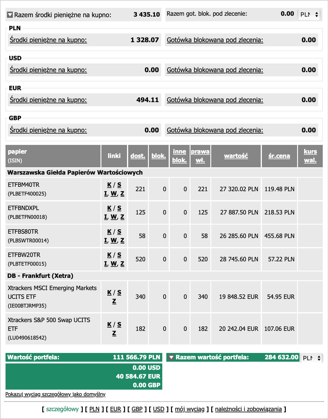 W momencie sygnału opuszczenia rynku akcji wykorzystuję ETF-y obligacyjne (w PLN i EUR).