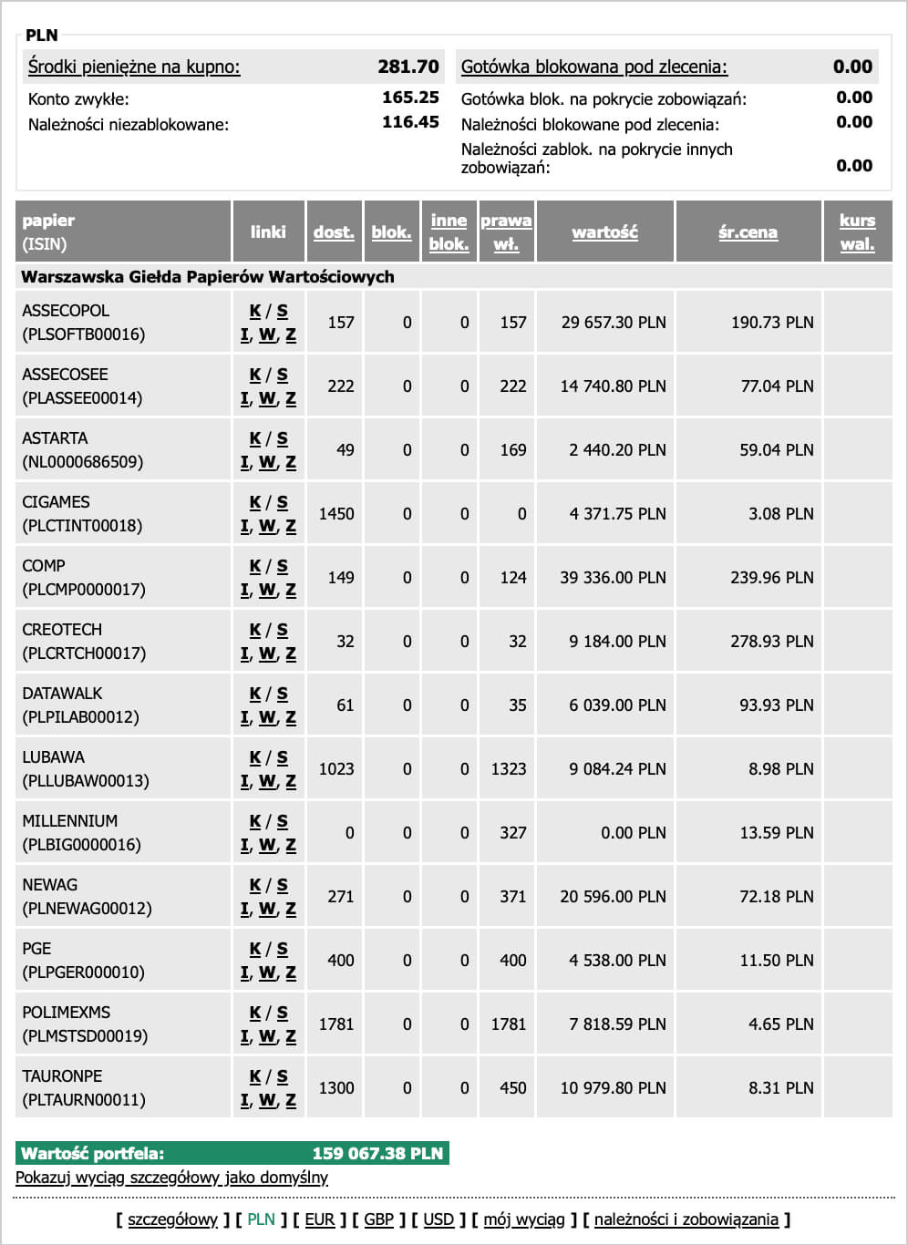 UWAGA: Niniejszy wpis nie jest rekomendacją inwestycyjną. To mój portfel, moje decyzje. Z nikim się nie ścigam, robię swoje.